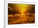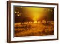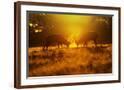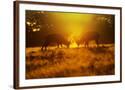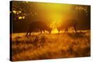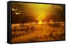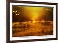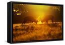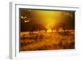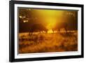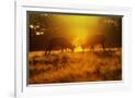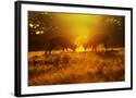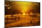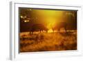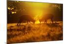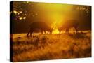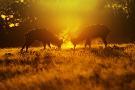 Red Deer Stags Rutting in Mist at Sunrise