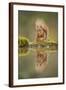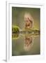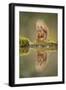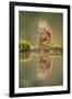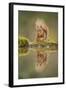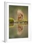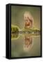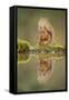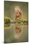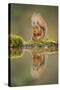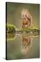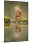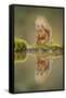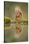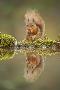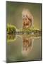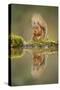 Red Squirrel (Sciurus Vulgaris) at Woodland Pool, Feeding on Nut, Scotland, UK, November
