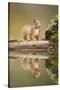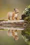 Red Squirrel (Sciurus Vulgaris) at Woodland Pool, Scotland, UK, November