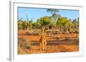 Red kangaroo (Macropus rufus) standing on the red sand of Outback central Australia