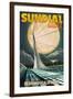 Redding, California - Sundial Bridge and Moon Wall Art Print