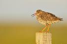 Redshank Perched on Fence Post Vocalising, Balranald Rspb, North Uist, Outer Hebrides, Scotland, UK