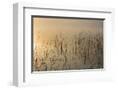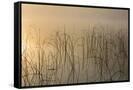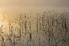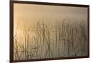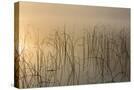 Reeds catch sunrise light on foggy morning on Spencer Lake, Whitefish, Montana, USA