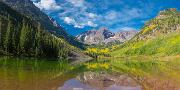 Reflection of a mountain on water, Maroon Bells, Maroon Bells-Snowmass Wilderness, White River N...