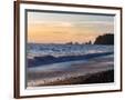 Rialto Beach, Olympic Peninsula, Washington State. Surf and sand at sunset.