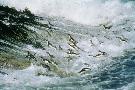 Rockhopper Penguins Group Jumping Through Sea Photo Print