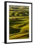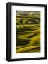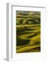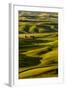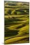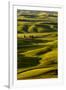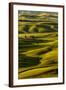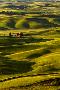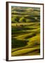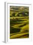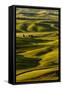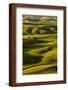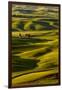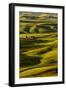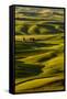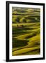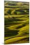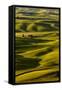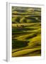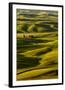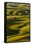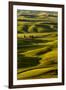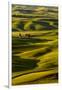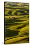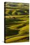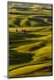 Rolling landscape of wheat fields and red barn viewed from Steptoe Butte, Palouse farming region of