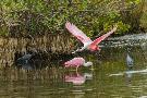 Roseate spoonbill flying, Merritt Island National Wildlife Refuge, Florida