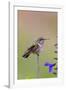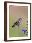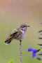 Ruby-throated Hummingbird immature male bathing in garden in rain shower, Marion County, Illinois.