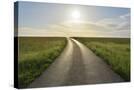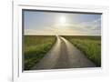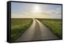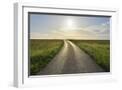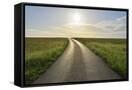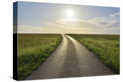 Rural road with sun, Gottersdorf, Neckar-Odenwald-District, Odenwald, Baden Wurttemberg, Germany