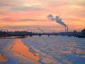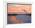 Russia, St; Petersburg; the Last Light over the Partly Frozen Neva River with in Winter