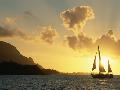 Sailing Yacht at Sunset off Coast of Hanalai Bay, Kauai, Hawaii, USA