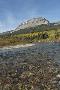 Saint Mary River and Singleshot Mountain in autumn, Glacier National Park, Montana.