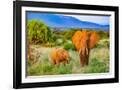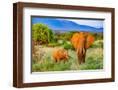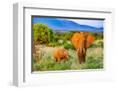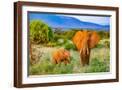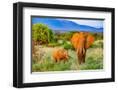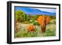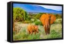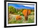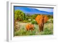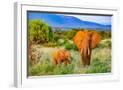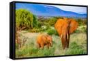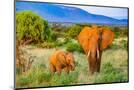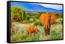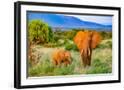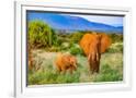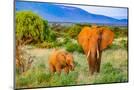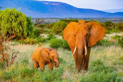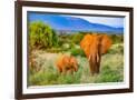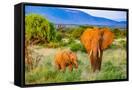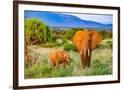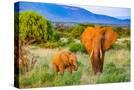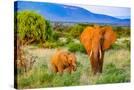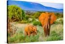 Samburu National Reserve, Kenya, Africa. Portrait of mother and baby African elephants.