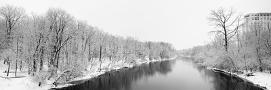 Scenic winter landscape of Des Plaines River, Wheeling, Illinois, USA