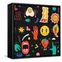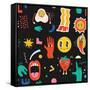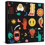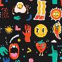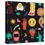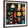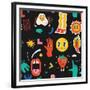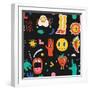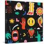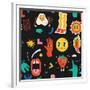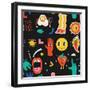 Seamless Pattern with Crazy Comic Faces and Colorful Geometric Shapes with Outline. Mosaic Texture Photo Print