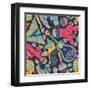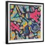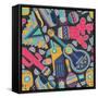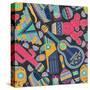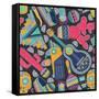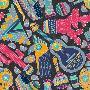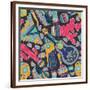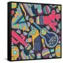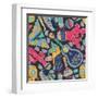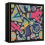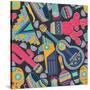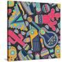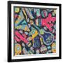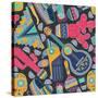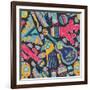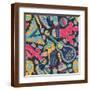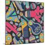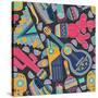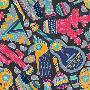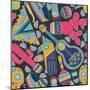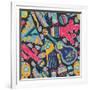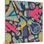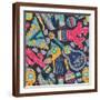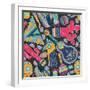 Seamless Vector Pattern with Hand Drawn Mexican Elements - Guitar, Sombrero, Tequila, Taco, Skull, Wall Art Print