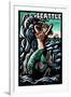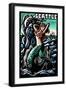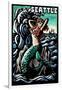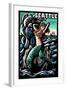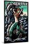 Seattle, Washington - Mermaid - Scratchboard Wall Art Print