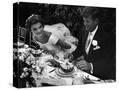 Senator John F. Kennedy and Bride Jacqueline Enjoying Dinner at Their Outdoor Wedding Celebration