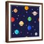 Set of Solar System Planets: Mercury, Venus, Earth, Mars, Jupiter, Saturn, Uranus, Neptune, Pluto. Wall Art Print