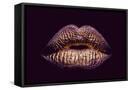 Sexy Female Golden or Gold Lips Isolated on Black Background as Makeup or Body Art Painted Mouth Me