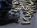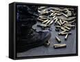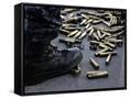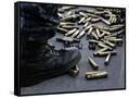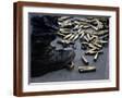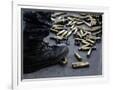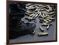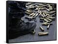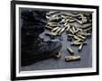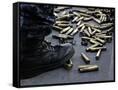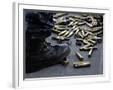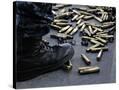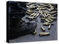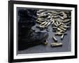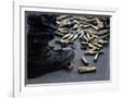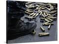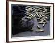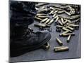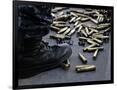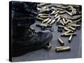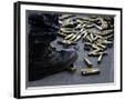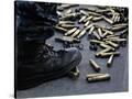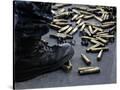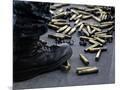 Shell Casings from a .50 Caliber Machine Gun Around the Feet of a Soldier Photo Print