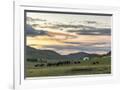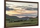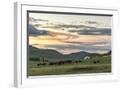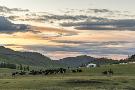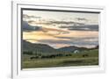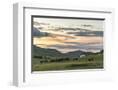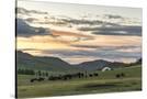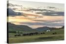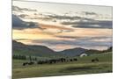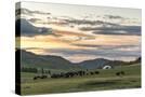 Shepherd on horse rounding up yaks at sunset, Burentogtokh district, Hovsgol province, Mongolia, Ce