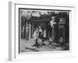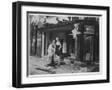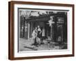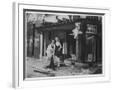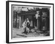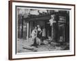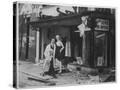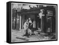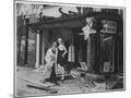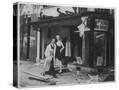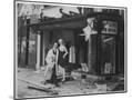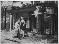 Shop Owner Poses with Two Mannequins Following the Destruction of His Shop by German Bombers