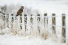 Short-Eared Owl (Asio Flammeus) Perched on a Fence Post, Worlaby Carr, Lincolnshire, England, UK