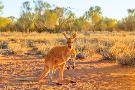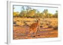 Side view of red kangaroo (Macropus rufus) standing on the red sand of Outback central Australia Photo Print