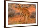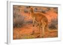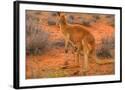 Side view of red kangaroo (Macropus rufus) with joey in its pouch, Australia