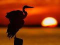 Silhouette of Great Blue Heron Stretching Wings at Sunset, Fort De Soto Park, St. Petersburg