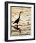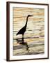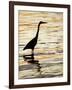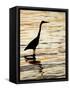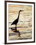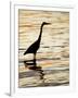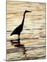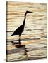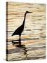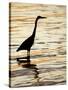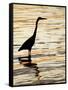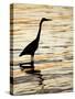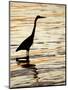 Silhouette of Great Blue Heron in Water at Sunset, Sanibel Fishing Pier, Sanibel, Florida, USA