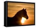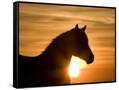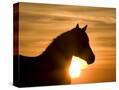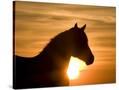 Silhouette of Wild Horse Mustang Pinto Mare at Sunrise, Mccullough Peaks, Wyoming, USA