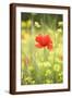 Single Poppy in a Field of Wildflowers, Val D'Orcia, Province Siena, Tuscany, Italy, Europe