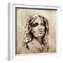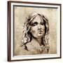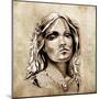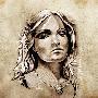 Sketch Of Tattoo Art, Lovely And Passionate Look From A Tent Of American Indian Girl