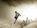 Ski Jump in Fog at Big Mountain Resort, near Whitefish, Montana, USA