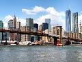 Skyline of NYC with One World Trade Center and East River, Manhattan and Brooklyn Bridge, US