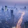 Skyline of Shanghai from Jing'An on a foggy November morning, China Photo Print