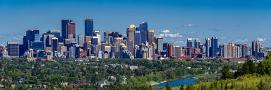 Skylines in a city, Bow River, Calgary, Alberta, Canada
