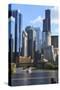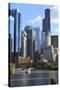 Skyscrapers Including Willis Tower in Downtown Chicago by Chicago River, Chicago, Illinois, USA