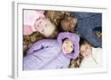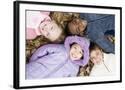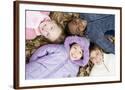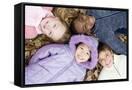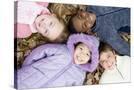 Smiling Children Lying on Autumn Leaves