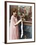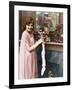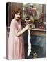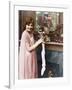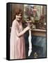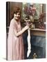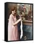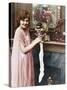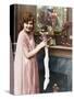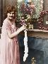Smiling Woman Stuffing Christmas Stocking Photo Print