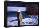 Snow Capped Fence Post Along Pond Giclee Wall Art