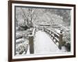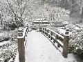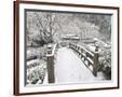 Snow-Covered Moon Bridge, Portland Japanese Garden, Oregon, USA