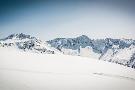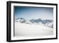 Snow Covered Slope with Mountain Ridge in the Back Photo Print