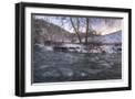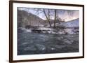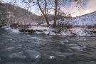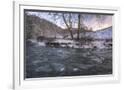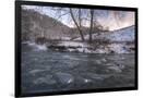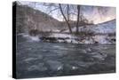 Snow covered landscape and icy river, Blue Ridge Mountains, North Carolina, United States of Americ
