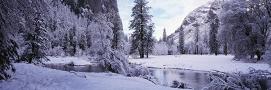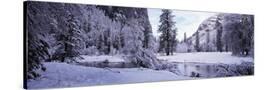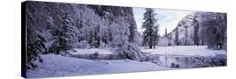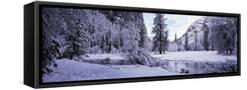 Snowcapped trees on a landscape, Merced River, Yosemite Valley, California, USA Photo Print