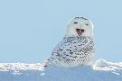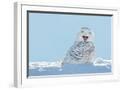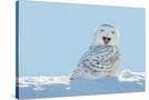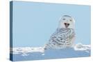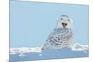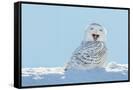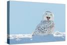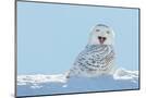 Snowy Owl Yawning, Which Makes it Look like it's Laughing. Copy Space to Left. Photo Print