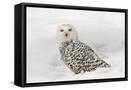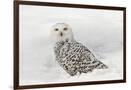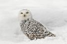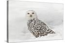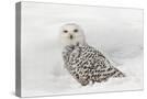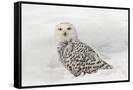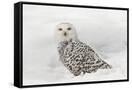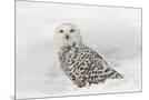 Snowy Owl on snow, Montana, Bubo scandiacus